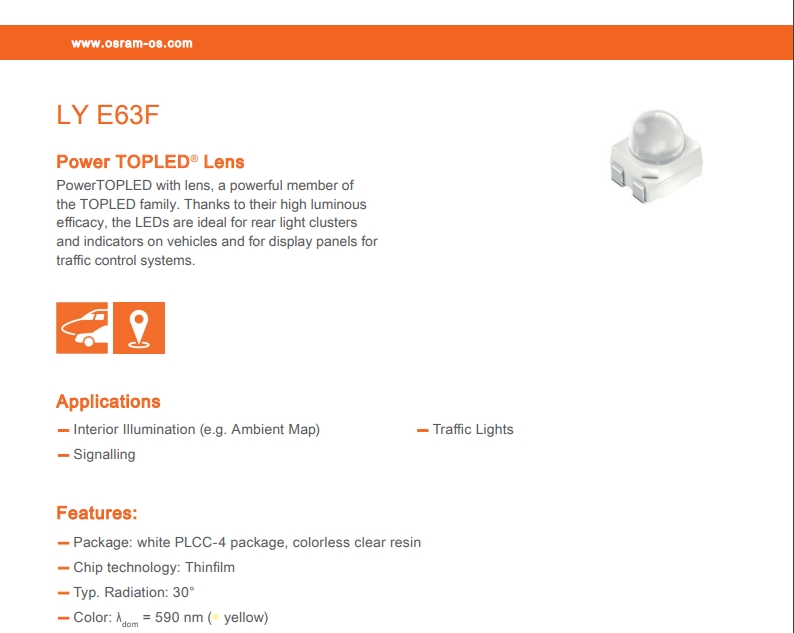 欧司朗LY E63F-EBGB-36-3B5A 单色LED Yellow Power TOPLED