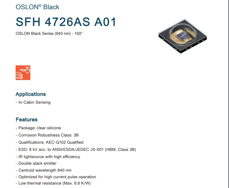 欧司朗SFH 4726AS A01红外发射源 Infrared 940nm IR OSLON blk-series
