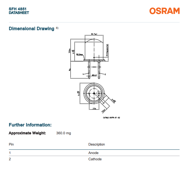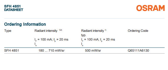 SFH 4851 红外发射源 Infrared 860 nm