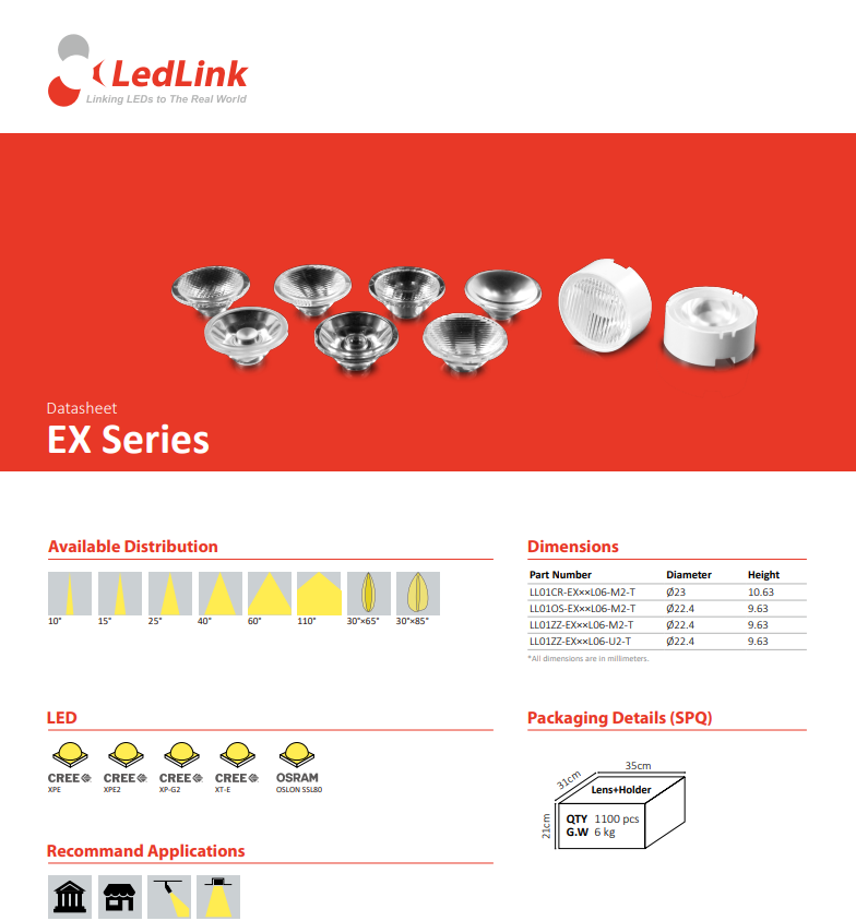 LedLink雷笛克LL01ZZ-EX10L06-M2 LED镜片和组件