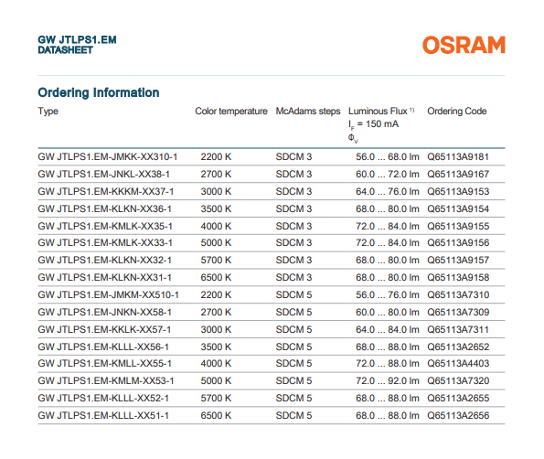规格书下载: https://look.ams-osram.com/m/6d1b7e23ad757065/original/GW-JTLPS1-EM.pdf