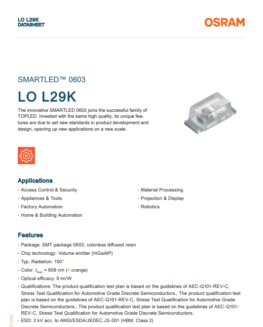 - Package: SMT package 0603, colorless diffused resin