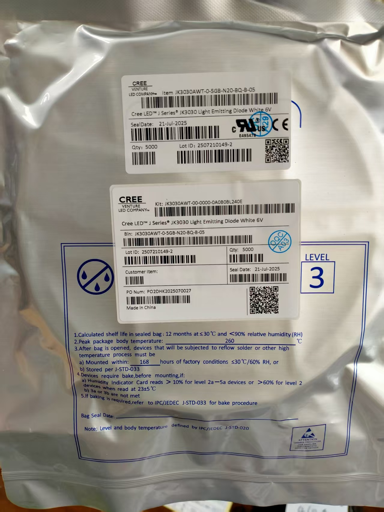 科锐 Cree XPEBGR-L1-G30-S5-E-0C XPEBRO-L1-O32-Q5-C-08 JK3030AWT-0-5GB-N20-BQ-B-05