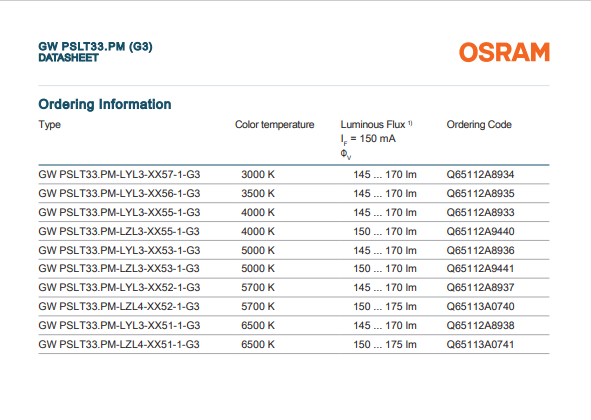 - Luminous efficacy: typ. 171 lm/W @ 4000 K