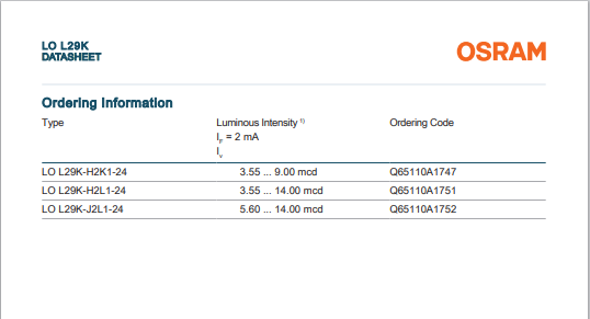 - Chip technology: Volume emitter (InGaAlP)
