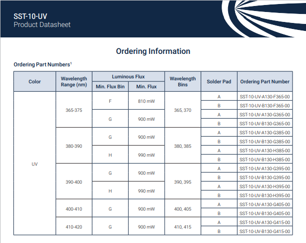 产品类型: UV LEDs (Ultraviolet)